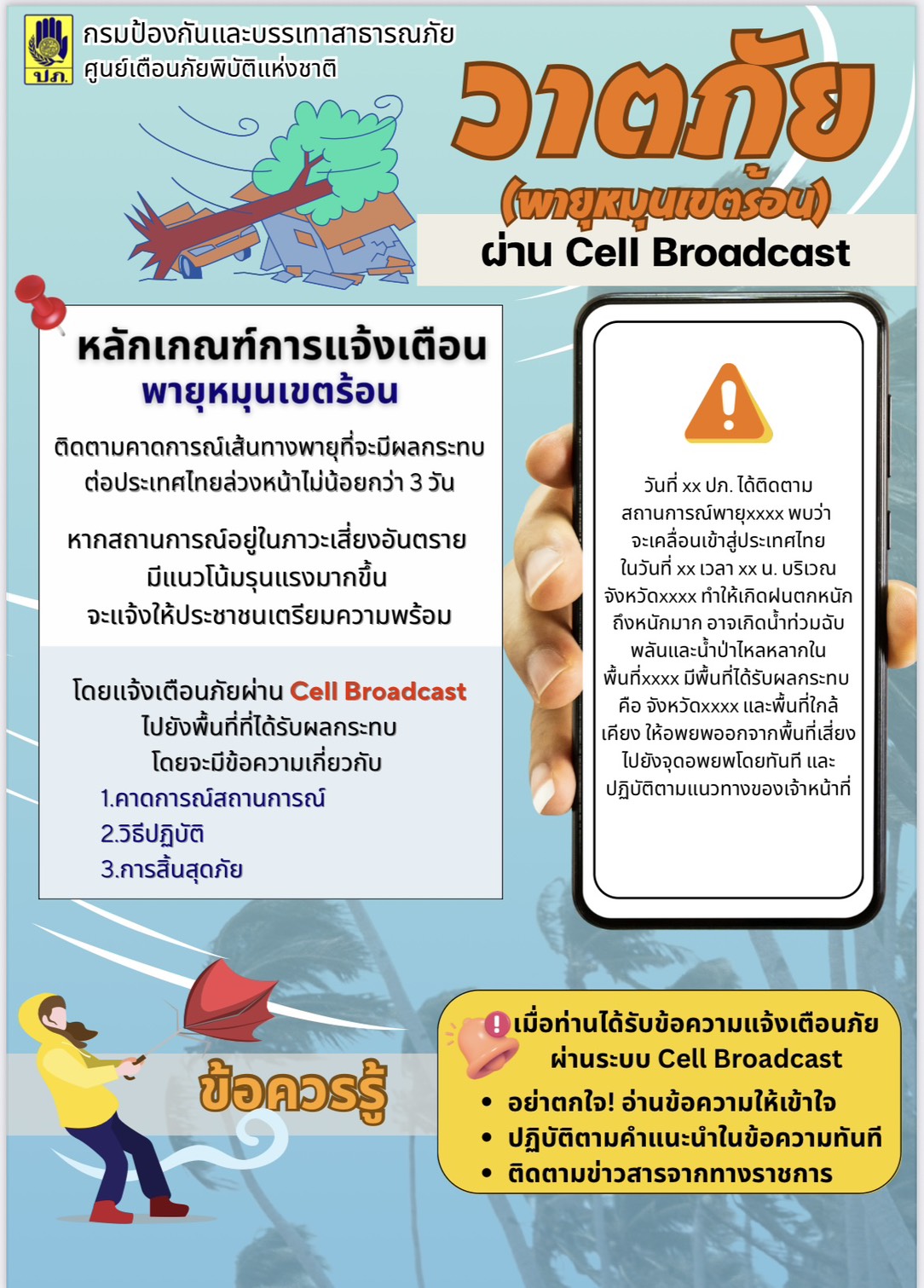 ประชาสัมพันธ์และสร้างการรับรู้การใช้ระบบแจ้งเตือนภัยผ่านสัญญาโทรศัพท์เคลื่อนที่ ให้ทั่วถึงและครอบคลุมทุกพื้นที่