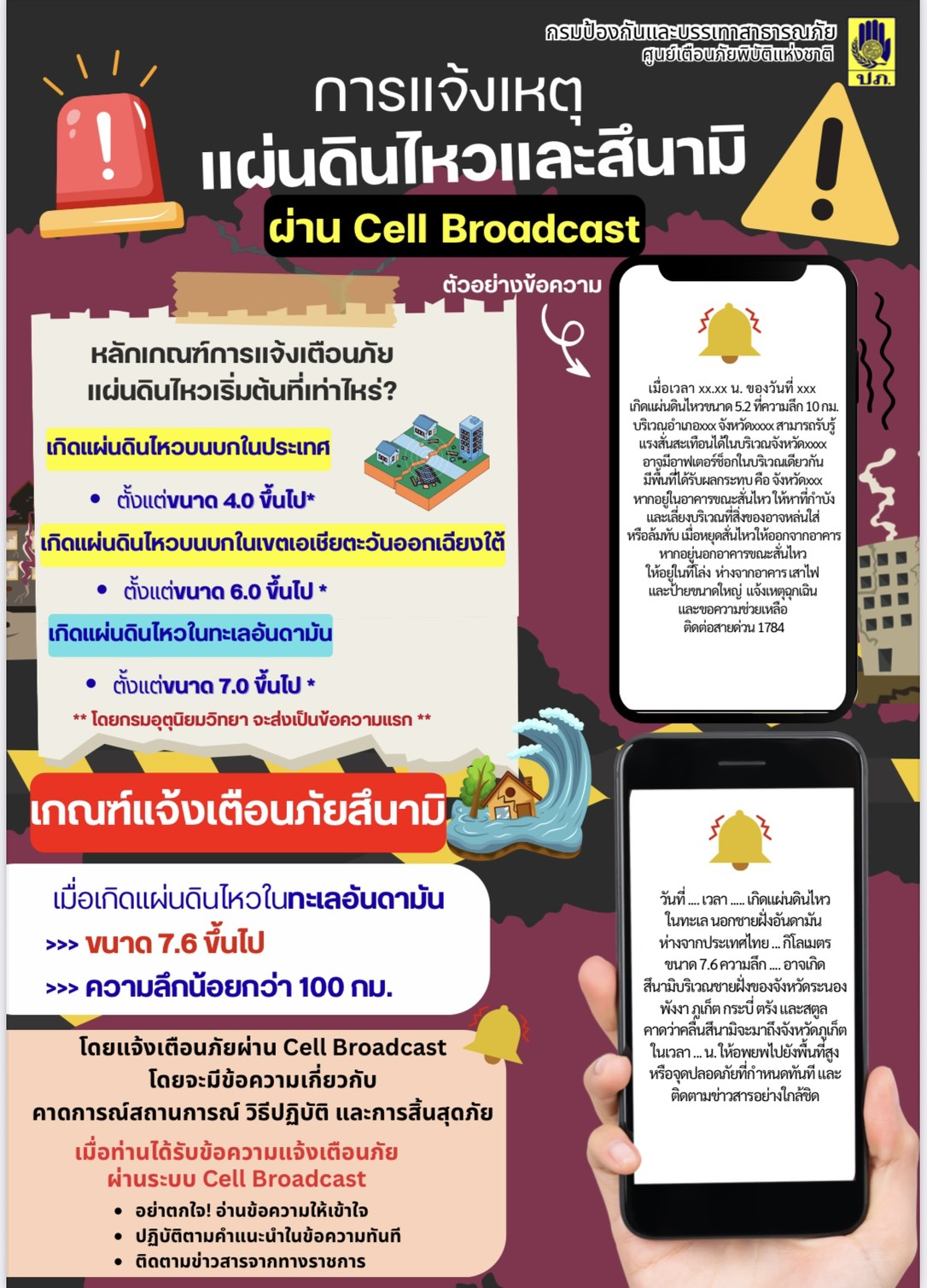 ประชาสัมพันธ์และสร้างการรับรู้การใช้ระบบแจ้งเตือนภัยผ่านสัญญาโทรศัพท์เคลื่อนที่ ให้ทั่วถึงและครอบคลุมทุกพื้นที่
